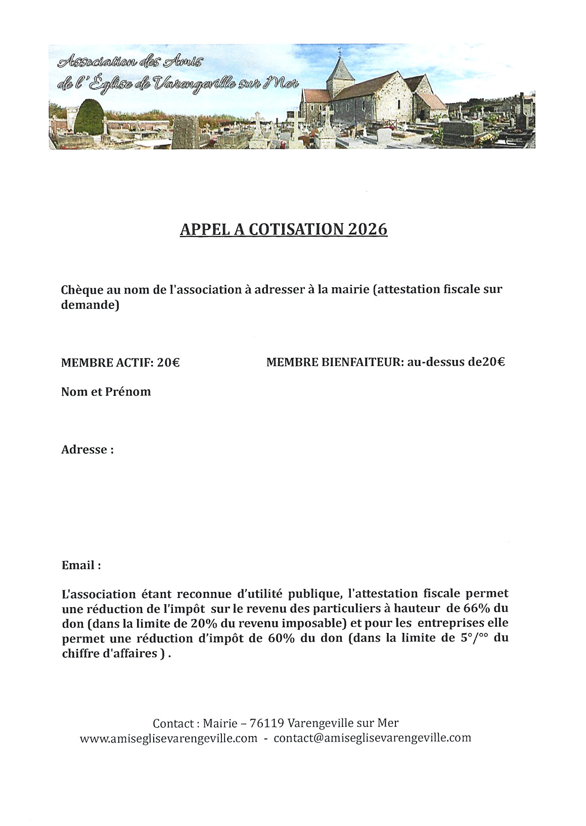 Membre actif : 20 € - Membre bienfaiteur : au dessus de 20 €